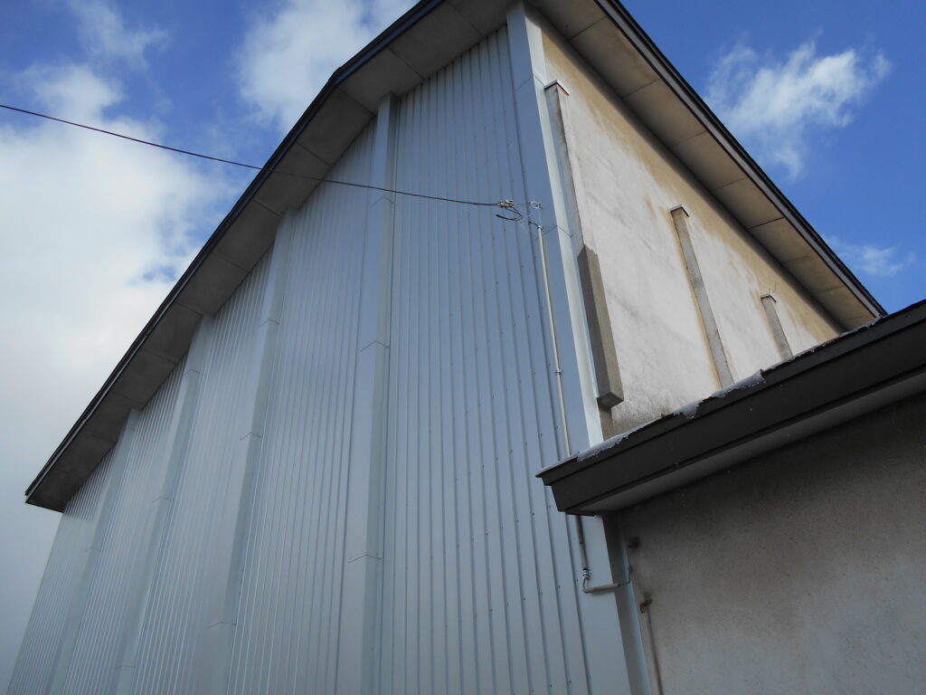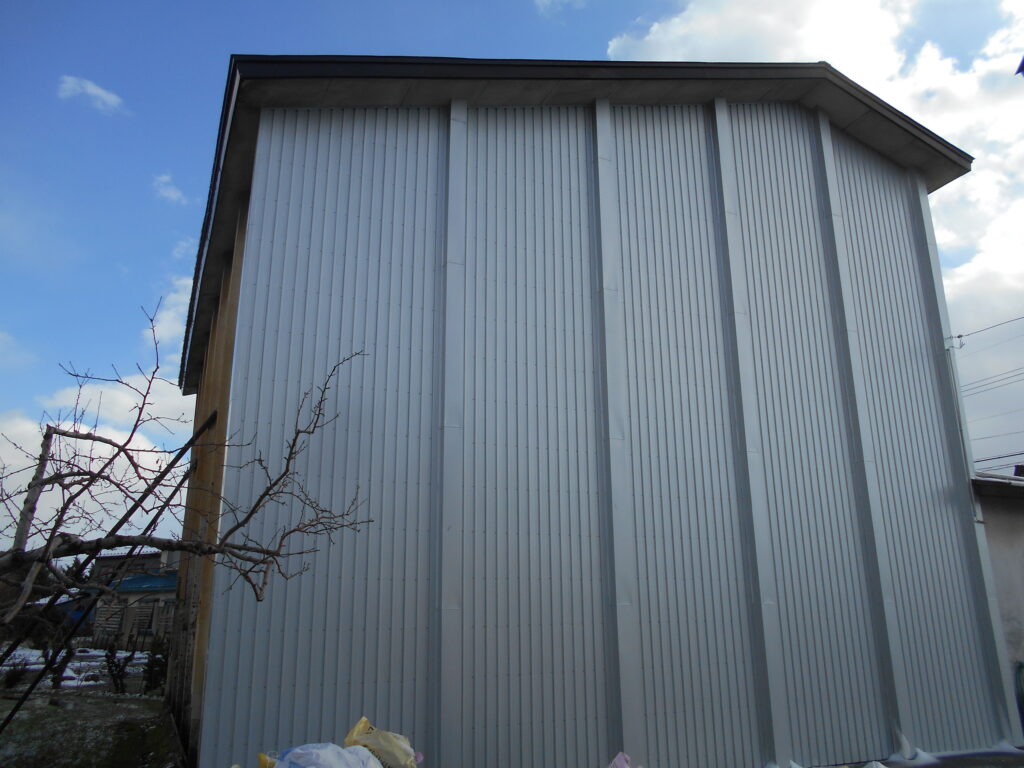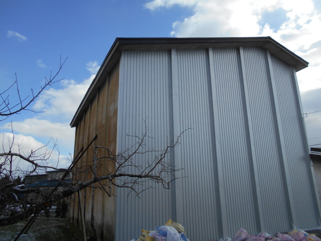 五所川原市のリンゴ倉庫、外壁工事で、綺麗にリフォーム!