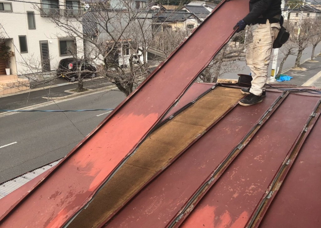 ②野地板が異常なければ利用します。腐食した部分は部分的に交換できます。全面的に腐食した場合は全交換になります。